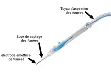 - Un manche porte-électrode (bistouri électrique) équipé d'une solution de captage intégrée