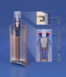 Il existe des générateurs d’aérosols à mono et à bi compartiments servant à séparer les produits actifs et le gaz propulseur. Pour affiner la diffusion du produit, une buse est ajoutée au bouton poussoir. Un capuchon ou capot, le plus souvent en plastique, sert de protection au diffuseur. Il est nécessaire dans le cadre de la réglementation transport[3].