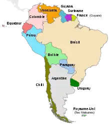 - Note : les îles britanniques Falkland (Malouines), Géorgie et Sandwich du Sud sont revendiquées par l'