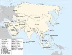 Elle compte plus de 50 pays et, en 2007, sa population atteint presque quatre milliards d'habitants, soit plus de 60 % de la population mondiale[1]. L'Asie possède plusieurs records géographiques mondiaux : l'altitude maximale avec l'Everest et ses 8 849 m, l'altitude minimale avec la mer Morte et ses −417 m, et le point terrestre le plus éloigné de tout océan, à 2 648 kilomètres de la côte la plus proche (coordonnées 46° 17′ N, 86° 40′ E).