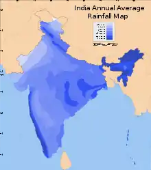 Le climat en Inde est fortement influencé par l'Himalaya et le désert du Thar. Le massif de l'Himalaya, de même que la chaîne de l'Hindū-Kūsh au Pakistan, constituent tous deux une barrière naturelle arrêtant les vents froids venant d'Asie centrale, maintenant ainsi au sein du sous-continent indien des températures plus élevées que dans la plupart des lieux situés aux mêmes latitudes. Le désert du Thar attire les vents de mousson chargés d'humidité qui sont responsables de la plus grande partie des précipitations en Inde.