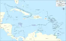 - le canal de Guadeloupe, large de 55 km entre Basse-Terre et Montserrat ;