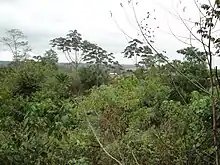 Cette grande zone du nord et nord-est dessine un paysage de plateaux étagés, d'une hauteur variant de 500 à 700 mètres, entièrement couverts par la forêt, où moutonnent de nombreuses collines et émergent des inselbergs[12],[5].