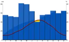 Température maximale moyenne (°C) 9,4 11,2 14,7 17,4 21,6 25,5 28,7 28,4 24,7 19,7 13,2 9,8 18,7