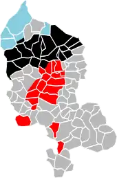 - Au nord, dans le pays sous-vosgien (rep. G) où le sol est constitué de grès permien rouge.