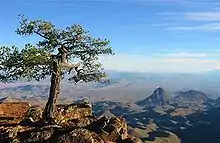 Le Texas occidental (West Texas) reçoit moins de 300 mm de pluie par an. Cette région située à l'ouest de la Pecos est semi-aride et offre une grande variété de milieux naturels : Sand Hills, Plateau Stockton, déserts (Chihuahua), versants boisés des montagnes et prairies[19]. Elle est occupée par des chaînes de montagnes et des bassins situés en altitude.
