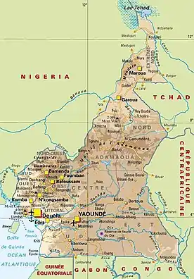 Le Cameroun se situe en Afrique centrale, le pays présente des paysages variés avec une zone de forêt primaire équatoriale dans le Sud, évoluant vers une zone de savane arborée puis de sahel à l'extrême nord. Le pays est traversé par une zone montagneuse dans l'Ouest et au centre.