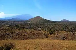 Le mont Cameroun est un des plus grands stratovolcans africains culminant à 4 070 m et le seul volcan actif de la Ligne du Cameroun. Il est composé de laves basaltiques à trachy-basaltiques[14],[15] telles des océanites, des hawaiites, des trachytes ainsi que des laves sous-saturées : téphrites et phonolites[16]. Ces éruptions hawaïennes ou stromboliennes se traduisent par l'ouverture de fissures volcaniques qui émettent des coulées de lave. Il est le volcan le plus actif de l'Afrique de l'Ouest[14] avec neuf éruptions au cours du XXe siècle[17]. La première éruption observée remonte au Ve siècle avant J.C. par l'explorateur carthaginois Hannon[14]. Ces coulées de lave atteignent parfois l'océan Atlantique comme c'est le cas en 1922[18] tandis qu'en 1999, la lave s'est arrêtée à 200 mètres du rivage[14],[19]. Celle de 1982 a produit des lahars et celle de 2000 un lac de lave[17],[19].