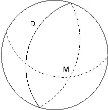 - les droites sont les grands cercles (c'est-à-dire les cercles ayant le même centre que la sphère).