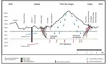 Les sources chaudes à Salazie et Cilaos, le forage SLZ1 de 1986 y sont figurés