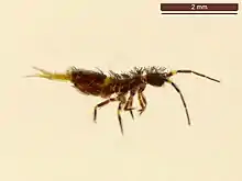 Le gène Ultrabithorax (Ubx) et le gène abdominal-A (abd-A) peuvent tous deux coopérer dans le but de spécifier le segment A3 de l’abdomen sur les lignées basales des Hexapoda (faisant partie du clade des arthropodes). Les gènes Hox Ubx et abd-A de la Drosophile et d’autres insectes ont pour rôle d’inhiber la formation partielle ou totale des membres des segments de l’abdomen. Une étude a révélé chez les Collemboles (membres du sous-embranchement des Hexapoda), un développement d’organes issus d’appendices au niveau de leur abdomen basal (pré-génital). Le développement de ces petits membres sur l’abdomen chez les lignées basales peut disparaître au cours de la métamorphose chez l’adulte. Dans cette étude, les chercheurs utiliseront des souches printanières de sol de Collemboles Orchesella cinta (Oc) pour leur position phylogénétique à la base des Hexapoda, les facilités pour les manipuler et les ressources génétiques mises à disposition dans les banques de données[11].