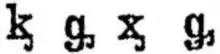 Johan Storm (en) utilise un g barré hameçon palatal, avec la barre à travers la panse, dans la transcription phonétique de Englische Philologie publié en 1892[1].