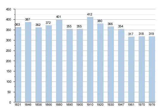 - Sources : INS, Rem. : 1831 jusqu'en 1970 = recensements, 1976 = nombre d'habitants au 31 décembre[5].