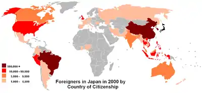 Le Japon comptait 2 217 000 étrangers à la fin 2008, soit 1,74 % de la population totale, avec une augmentation de 50 % en dix ans. Le nombre d'étrangers a baissé pour la première fois depuis 48 ans en 2009 avec 2,19 millions de personnes, soit 1,4 % de moins qu'en 2008[1].