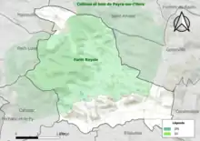 - les « collines de la Piège » (27 918 ha), couvrant 40 communes dont 38 dans l'Aude et 2 dans la Haute-Garonne[18].
