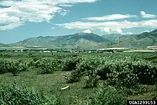 L'espèce a été introduite aux États-Unis, à Logan dans l'Utah, en 1891 comme plante fourragère potentielle en vue d'essais à la station expérimentale agricole de l'Utah. Vu sa faible productivité comparée à celle de la luzerne, et la faible appétence du bétail pour cette plante, l'essai fut rapidement abandonné. Par la suite, la plante n'a plus été signalée dans l'Utah avant 1909, avant d'être classée comme mauvaise herbe nuisible (noxious weed) en 1974. Les tentatives d'éradication ont échoué[10]. Outre l'Utah, l'espèce est désormais naturalisée dans plusieurs États (Colorado, Connecticut, Maine, Maryland, Massachusetts, Nebraska, New York, Pennsylvanie, Washington) ainsi qu'en Ontario (Canada). Elle s'est également naturalisée au Chili et en Argentine, ainsi qu'en Nouvelle-Zélande[11]. Elle est considérée comme plante envahissante aux États-Unis.