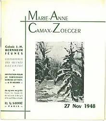 C'est cependant l'époque où la galerie accueille le salon de la Société des femmes artistes modernes , créée en 1931 par Marie-Anne Camax-Zoegger présentant ainsi entre autres des œuvres de Camille Claudel, Hermine David, Bessie Davidson, Alice Halicka, Adrienne Jouclard, Marie Laurencin, Marthe Lebasque, Tamara de Lempicka, Mariette Lydis, Mela Muter, Chana Orloff, Valentine Prax ou Suzanne Valadon[13]. En 1935, 1936, 1938. Une exposition personnelle de Raymonde Heudebert se tient en 1932[14]. Marie-Anne Camax-Zoegger y expose aussi en 1948.