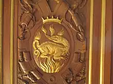 Les boiseries en noyer sculpté sont l'œuvre du menuisier italien Francesco Scibec de Carpi qui les réalisa dès 1535 avec des essences rares, mais se tourna presque exclusivement vers le bois de noyer à partir de 1539, date à laquelle il exécute le parquet de la galerie et les lambris.