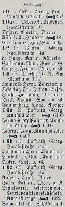 - Oedersche Häuser 1924: Jacobistraße 10, 10a, 12, 14a, 14b, 14c, in Düsseldorfer Adreßbuch 1924.