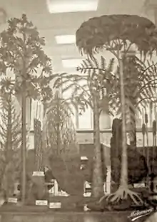 La galerie de Paléobotanique présentait environ 350 pièces issues de cette collection[2], une reconstitution « grandeur nature » d’une forêt du Carbonifère[note 2] et d’autres milieux du Paléozoïque et du Mésozoïque, avec la faune entomologique correspondante, retraçant ainsi l’évolution des plantes.