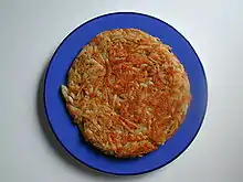 La galette de pommes de terre appartient à la tradition culinaire juive ashkénaze où elle est connue sous le nom de latke (yiddish : לאַטקע, plur. latkes, לאַטקעס ; peut être prononcé laht-kehs ou laht-kès, en fonction du dialecte régional et/ou familial[13]) et appelée leviva en Israël[14]. Elle est frite dans l'huile à la poêle. De nombreuses variantes existent : au fromage, aux pommes, aux courgettes, aux épinards, au riz, etc. Les latkes sont habituellement préparés et dégustés sans garniture, traditionnellement lors de la fête de Hanoucca, bien qu'ils n'y jouent pas de rôle rituel fondamental, pas plus que les soufganiyot[15] depuis le milieu du XIXe siècle[16]. Toutefois, ces deux plats, frits à l'huile, d'olive de préférence, visent à commémorer indirectement le miracle de la fiole d'huile sans laquelle la nouvelle inauguration du Temple n'aurait pu se faire proprement, selon la tradition rabbinique.