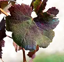 - Baies petites à moyennes, grisâtres avant la véraison puis d'un beau noir bleuté, à jus très coloré
