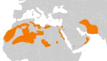 Cette espèce vit depuis l'Ouest de l'Afrique jusqu'au Pakistan.