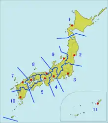 - 1er quartier-général des garde-côtes : Otaru (incluant les îles Kouriles disputées à la Russie)