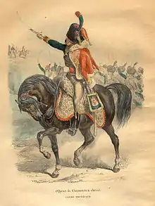 - avec « le vieux Giroudeau, capitaine aux dragons, parti simple cavalier à l’armée de Sambre-et-Meuse, cinq ans maître d’armes au premier hussards, armée d’Italie ! […] « un vieux capitaine des dragons de la Garde impériale, retraité chef de bataillon, entré dans toutes les capitales de l’Europe avec Napoléon… » (dans Illusions perdues, pages 205-206).
