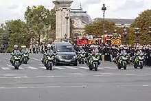 - Escorte du Président de la République française et des chefs d’États étrangers en visite officielle