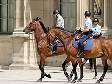Le régiment de cavalerie assure également des missions de formation au bénéfice de communes françaises souhaitant bénéficier de son expertise équestre pour leur police municipale.