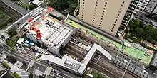 Le , la gare aérienne de la ligne Chūō-Sōbu est déplacée 200 mètres plus à l'ouest, pour éviter la courbure de la gare à son emplacement précédent (courbure de 300 mètres de rayon, occasionnant un important fossé entre le marchepied et le quai)[1].