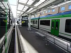 Point d'arrêt non géré, elle dispose de bancs abrités sous le toit du quai ainsi qu'un distributeur de billets, un interphone d'urgence et un oblitérateur pour les cartes multicourses sont présents. On y trouve également un ascenseur et deux escaliers qui donnent accès au quai qui sert les deux voies. La station est protégée par vidéosurveillance.