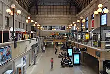 Le hall des départs est une grande salle du XIXe siècle, construite sur deux niveaux et éclairée par une vaste verrière. Dans ce hall, une carte peinte, de grandes dimensions, amputée à l'occasion des travaux de rénovation de la gare dans les années 1980 — pour créer un passage entre deux espaces —, représente les lignes du réseau de la compagnie du Midi, de Bordeaux à Sète[9]. La partie amputée correspond à l'essentiel du massif des Pyrénées et des lignes de montagne de l'ancien réseau du Midi (en particulier dans l'Ariège et l'Aude).
