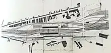 Cette compagnie entreprenait depuis 1852 la construction d'une ligne de chemin de fer entre Bordeaux et Sète. Le , elle adresse aux autorités un projet d'implantation d'une gare sur les quais de Bourgogne, de la Salinière et de la Grave, au détriment des activités navales qui s'y trouvaient. Elle doit faire face à une levée de boucliers des riverains[6]. Est seulement autorisée la construction d'une gare provisoire à l’extrême sud de Bordeaux, sur les terres basses de Paludate. La gare ne comptait que cinq voies et les bâtiments étaient en bois[6].