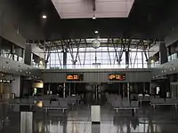 Le bâtiment voyageurs de la gare se divise en deux étages : un étage inférieur (rez-de-chaussée) et un second au niveau des voies. L'accès à la gare se fait via le rez-de-chaussée, à travers un grand hall central. Celui-ci propose des services de cafétéria, de vente de journaux, d'information aux clients, de vente de billets et de location de véhicules. À l'étage supérieur se trouvent l'accès aux quais et des locaux encore vides qui pourront accueillir à l'avenir de possibles commerces ou bureaux. Ces quais sont accessibles via des escaliers mécaniques ou des ascenseurs. Les quais se trouvent à l'air libre, couverts par une grande marquise.