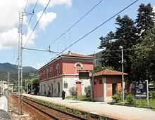 Ancien bâtiment voyageurs et entrée de la halte. | ||||