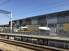 Vue des quais avec la gare Shinkansen en arrière-plan.