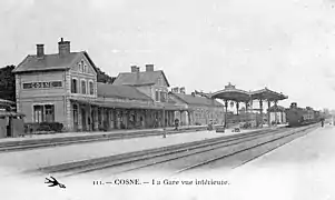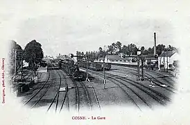 Elle devient une gare de bifurcation lorsque la section de Clamecy à Cosne, de la ligne d'Auxerre à Cosne est mise en service par la Compagnie du PLM le [5]. Le nœud ferroviaire se renforce le de cette même année lors de l'ouverture, par la Compagnie du chemin de fer de Paris à Orléans (PO), de la ligne de Bourges à Cosne[6].