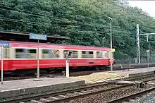 Une rame TER Lyon - Mâcon marque l'arrêt en gare sur voie B (quai central). | ||||