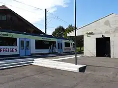 Le mardi , la compagnie du LEB met à l'enquête la construction d'un nouveau bâtiment pour cette station. En effet, plusieurs travaux de modernisation sont entrepris au cours de l'été 2013. La halte est dotée d'un P+R d'environ trente places. Le quai de 50 m est allongé de 40 m pour atteindre 90 m afin de permettre la desserte de compositions en unité multiple de deux rames formées de trois voitures chacune. Le bâtiment est déplacé plus au sud afin d'augmenter l'espace pour les véhicules accédant à la station. Finalement, la voie de garage est supprimée. Les travaux ont lieu en même temps que la réfection de la voie entre Sugnens et Fey. L'ensemble des travaux est devisé aux alentours des 8 millions de francs[2].