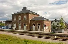 L'ancien bâtiment voyageurs, vu depuis la rue du Chemin-de-Fer. | |