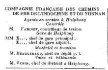 - Anonyme, « Tarif spécial P.V. 109 et 110 », Annuaire général de l'Indo-Chine française, Hanoi, , p. 567-568 (lire en ligne, consulté le )