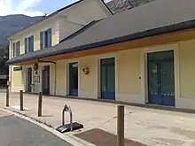 Bâtiment voyageurs et entrée de la gare. | |||