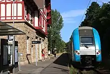 Ancien bâtiment voyageurs et quai de la halte. | |||||