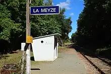 Jusqu'en 2018, La Meyze est desservie par des trains express régionaux de la relation Limoges-Bénédictins - Brive-la-Gaillarde[3]. Depuis l'affaissement de voie à Vignols en février 2018, les trains desservant La Meyze sont limités à Saint-Yrieix[4],[5],[6].