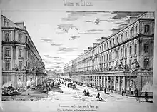 De 1869 à 1870[34], la ville fait réaliser une percée de type « haussmannien », la rue de la Gare, renommée rue Faidherbe, qui relie la place de la Gare au théâtre[33], ce qui nécessite la démolition du marché aux Poissons (également appelé Minck), de l'ancienne halle échevinale[35], et aussi de l'habitat et des lieux de travail d'un quartier peuplé d'artisans et de gens modestes[36]. La « rue de la Gare » est ouverte l'année où la fréquentation annuelle de la gare dépasse le million de voyageurs, avec 1 081 538 (hors abonnements)[27].