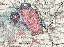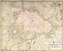 Cet agrandissement était plus modeste que celui décidé en 1858, puisqu’il aurait laissé hors de l’enceinte Esquermes, Moulins et la plus grande partie de Wazemmes[4].