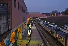 Les voies et les quais, avec deux trains. | |