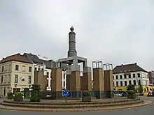 Ce monument, appelé mijlpaal en néerlandais, est une colonne en pierre érigée à l'occasion de l’inauguration de la ligne et de la circulation du premier train en Belgique. Progressivement déplacé de son piédestal devant la gare, il est à nouveau installé sur le rond-point de la gare dans les années 2010[Quand ?].